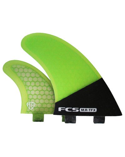 Mark Richard's Signature Series performance core twin template, the FCS MR-TFX PC Twin/ Tri Fin Set features an advanced foil plus a dynamic stabilizer for maximum performance in twin, super twin or fish options. Performance core construction is designed to deliver the feeling of a traditional fiberlgass fin with the added performance of reduced weight. The RTM (Resin Transfer Moulding) process produces a lightweight fin with remarkable flex, a smooth feel, and an impressive aesthetic. MR's template with stiff carbon base for twin, super twin or fish set ups; available with a dynamic stabilizing center fin.